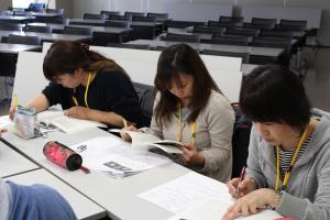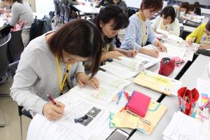 みなさん初めての取り組みですが、テキストを見ながら穴埋め問題をどんどん埋めています!