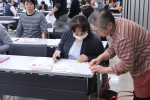 数人のグループに分かれ、先生方が学生の皆さんに作成指導を行います。