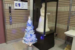 1階のエレベーター脇にツリーが登場しました*:..。o○☆゚+。*