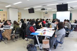 グループごとに代表者が意見を発表し、そのあと別グループの代表者が感想を話しました。