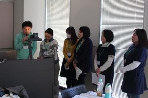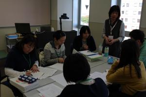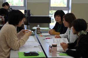 グループ内で、実習での気づいたことや発見したことを出し合っています。