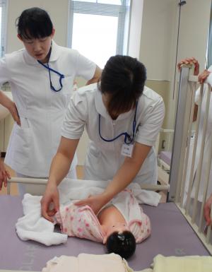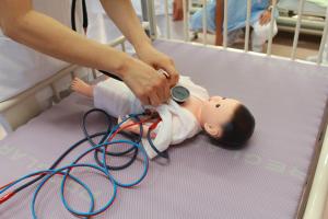 実習室には赤ちゃんの心音を聞く事ができる人形もあります。