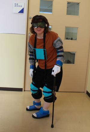 目には特殊なゴーグル、手足には重り、耳には耳栓、腰にはサポーターを装着すると・・・